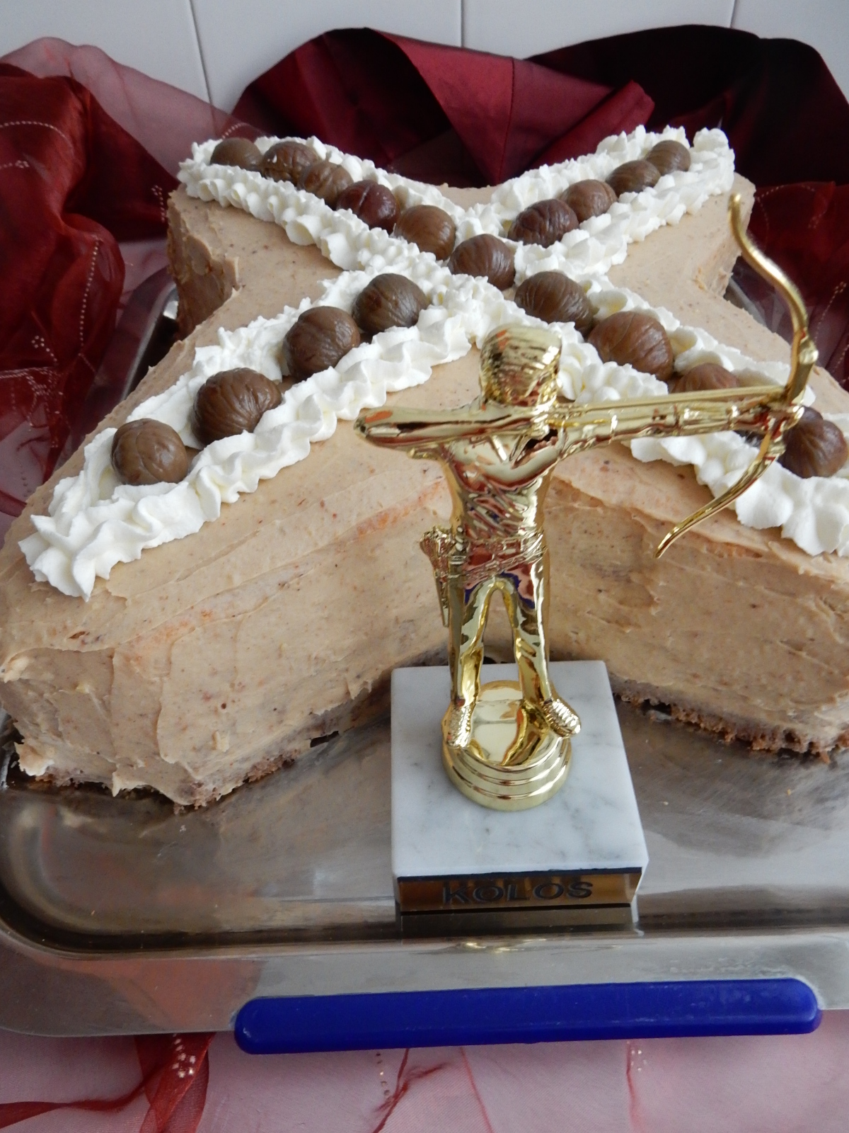 Amikor kihűlt felvágjuk, tányéron elrendezzük és porcukorral meghintjük.